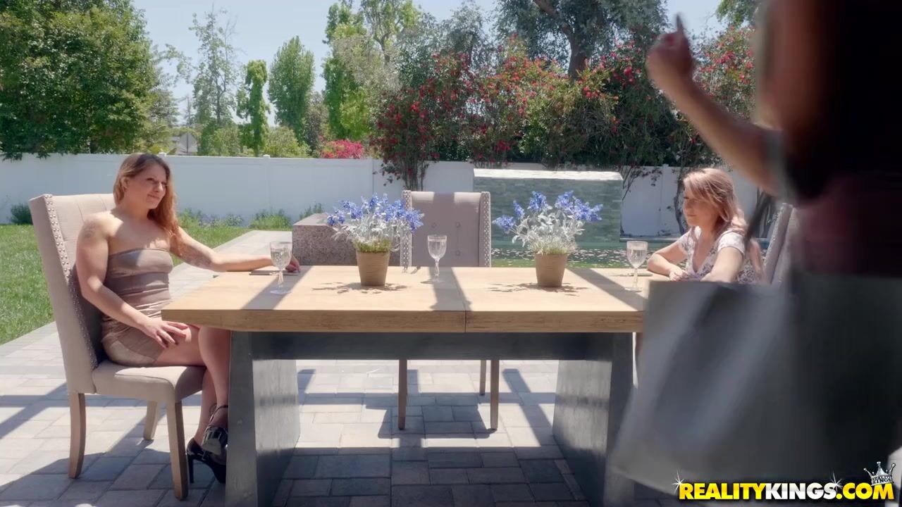 The waiter roughly chokes and fucks the swindler in front of her girlfriends