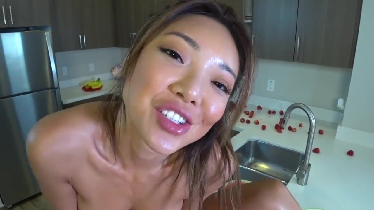 Despite the fact that Ayumi Anime has not long been into porn, a relative newcomer to the industry feels comfortable in front of the camera, having entered the world of adult videos from the modeling business. She is not afraid to take off her clothes and show passion through the screen, as you can see for yourself. Here, a charming Asian woman arranges a kitchen excursion into the world of debauchery, first pouring watermelon juice over her sultry body, and then licking strawberries and shoving them into her wet slit with an intimate haircut. But a real celebration of pleasure began when a crooked banana appeared in Ayumi's pussy, which brought our heroine to orgasm.