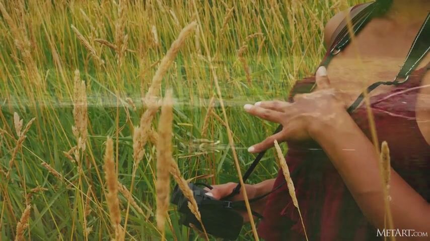 A charming girl from Indian Bombay has a hobby - she loves hiking in the wilderness. Often she takes a hiking backpack, binoculars and goes on a trip, enjoying the nice views of untouched nature. She most of all likes the feeling of freedom that she experiences during such walks for tens of kilometers. So, once in a deserted place, the chick enjoyed the view of the river, then lay down in the tall grass and began to undress, posing in the nude and showing a large natural Asian breast.