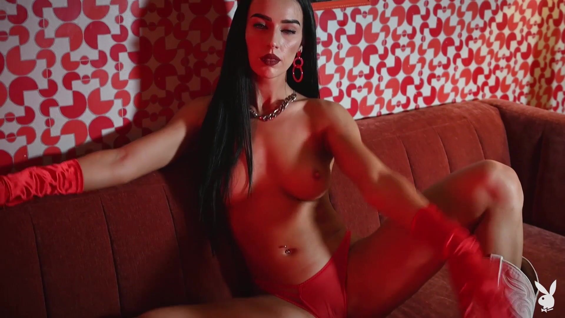 Free and independent bitch Chevelle in red lingerie and a cowboy hat shows how women should behave with men in order to succeed in relationships.