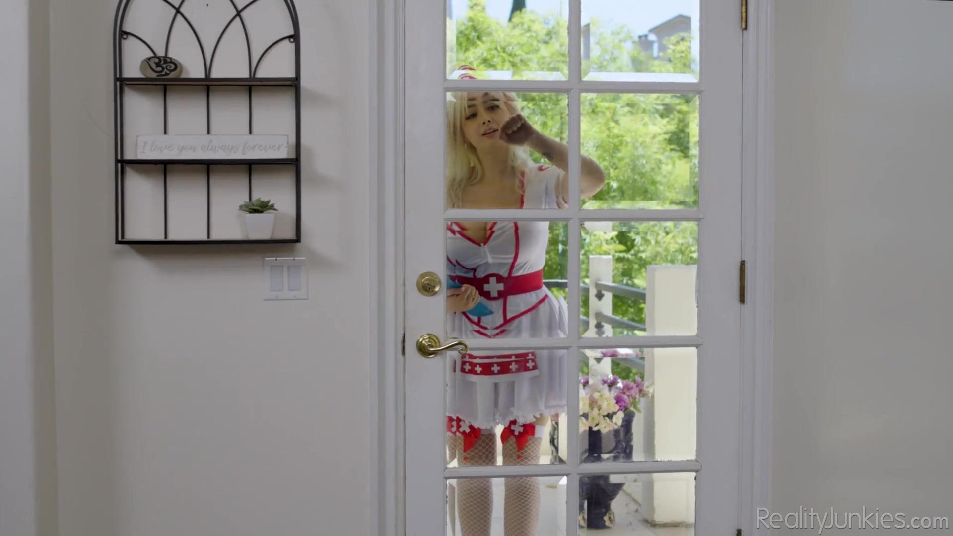 Family Nurse Chloe has started routine home check-ups for all patients in her assigned area. The first to open the door to her was a handsome man Ryan, who liked the busty beauty and she began to examine him with great pleasure. It all ended with her big natural tits falling out of her dressing gown, and Ryan's hard cock ended up in Chloe's hand. An awkward situation, of course, but excited lovers quickly turned it into a hot intercourse.