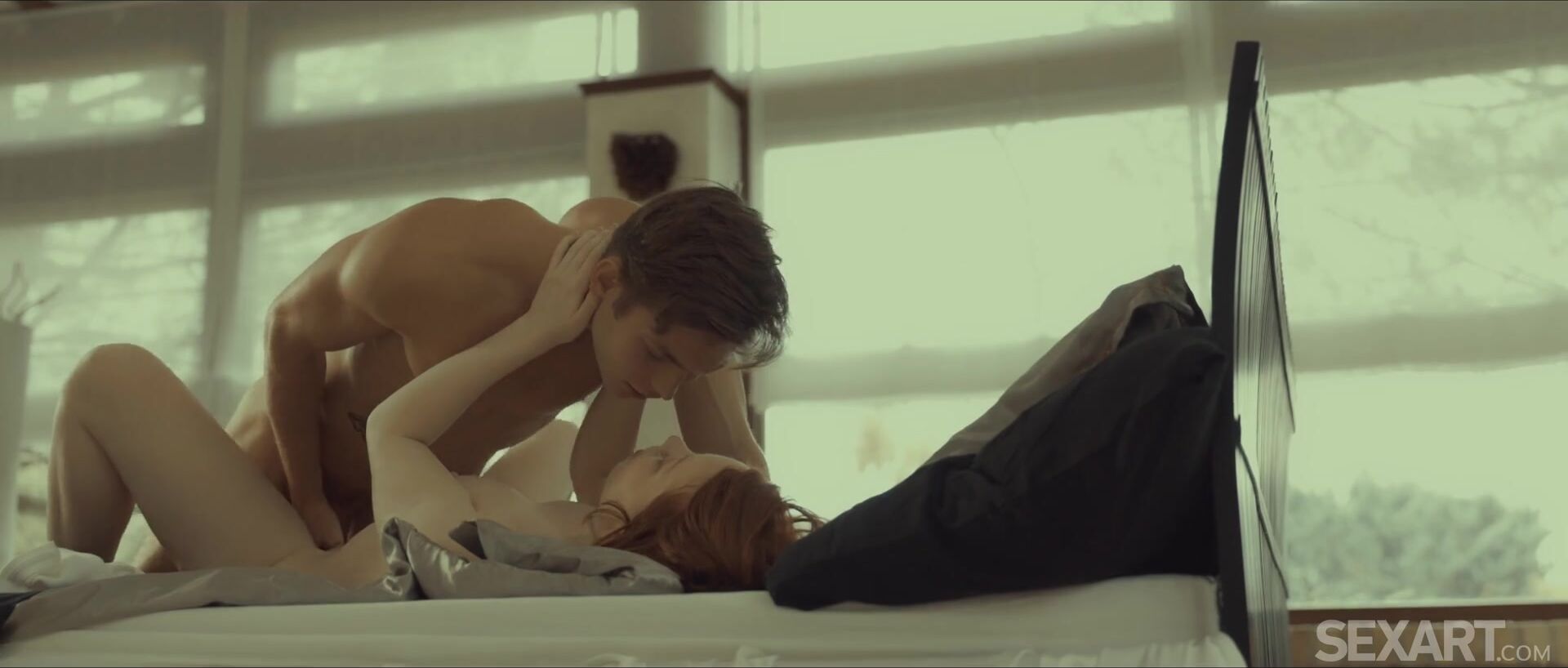 Lying on the bed, passionate lovers Lottie and Tommy are in each other's strong arms and kiss gently, becoming more and more excited. So far, they are both dressed, but already feel each other's arousal even through the clothes. When naked pussy rubs against the guy's hard cock, he groans with pleasure and hurries to penetrate it. Cock riding makes the red-haired beauty tremble in ecstasy, but soon the initiative passes into the hands of Tommy and he is on top.