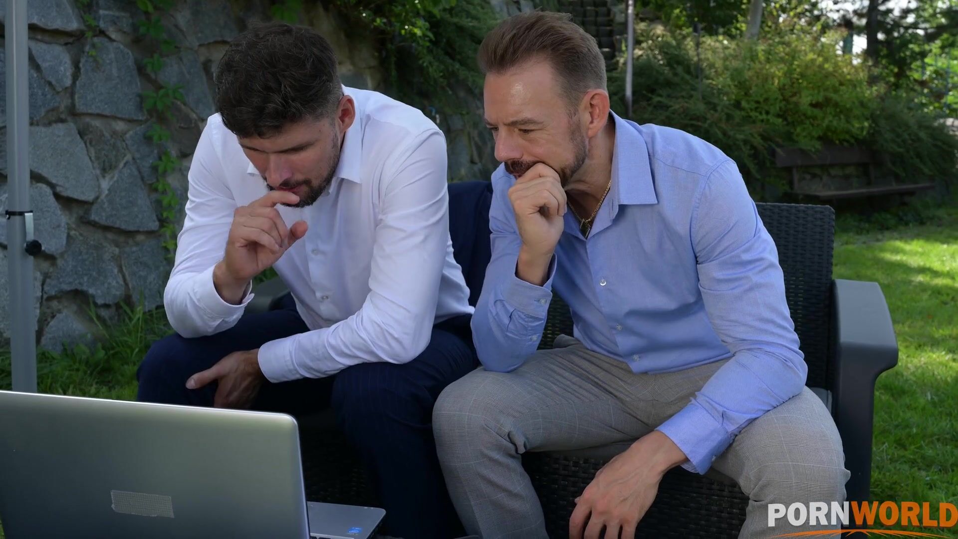 A wealthy businessman invites several of his employees to his dacha to settle all the working moments before a big deal. But when they start working together in the backyard of his mansion, the man is urgently called to the office and he, in order not to interrupt the process, leaves the guys at his place and leaves. Max and Eric are left alone with the boss's beautiful wife Alexis, who turns out to be so loving that she seduces them into a double penetration threesome.