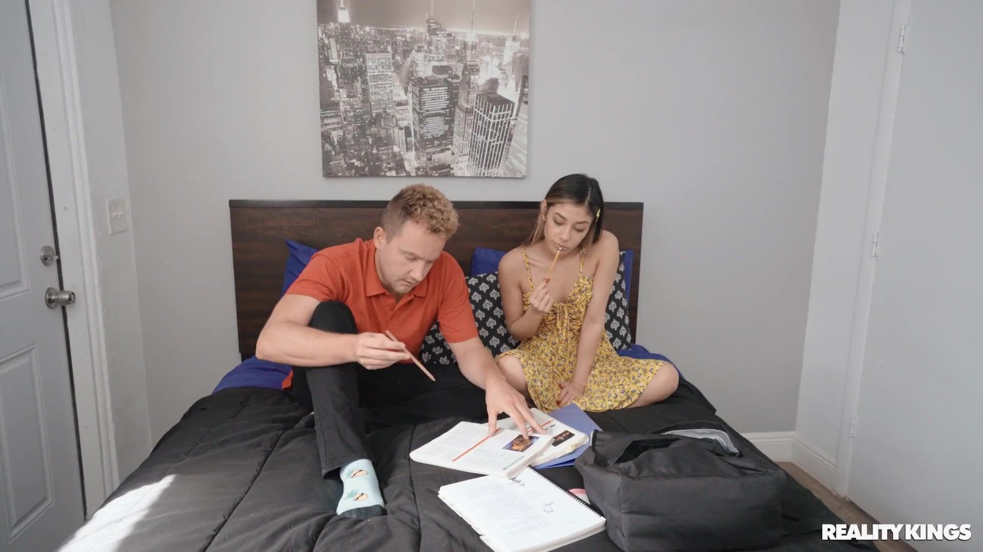 Cute student Xxlayna has an irresistible desire to have sex with her classmate and friend Van, but he is a real nerd and sees nothing but textbooks around him. Every day they study lessons together and every day the girl wants to fuck the guy, but doesn't know how to admit it to him. Van's stepmom is Misty's hot MILF who sees through the little girl and knows how to keep her aroused. After inviting her into the bathroom, Misty teaches the baby lesbian sex, and then her stepson Van also pulls up to them.
