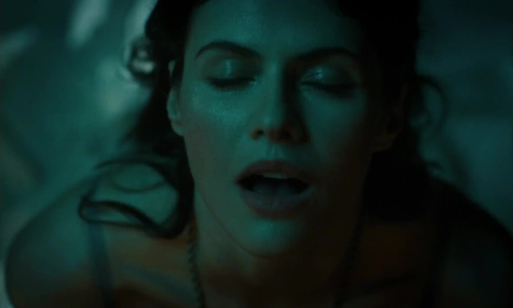 And again Alexandra Daddario as Rowan Fielding and again in the series "Anne Rice's Mayfair Witcher" and again the sex scene in the cowgirl position, but now we will see her breasts in a bra, all this happens in fourth episode of the series. First in a T-shirt, then in a bra, let's hope that the next step will be a scene with nude tits of a beautiful 36 year old American.