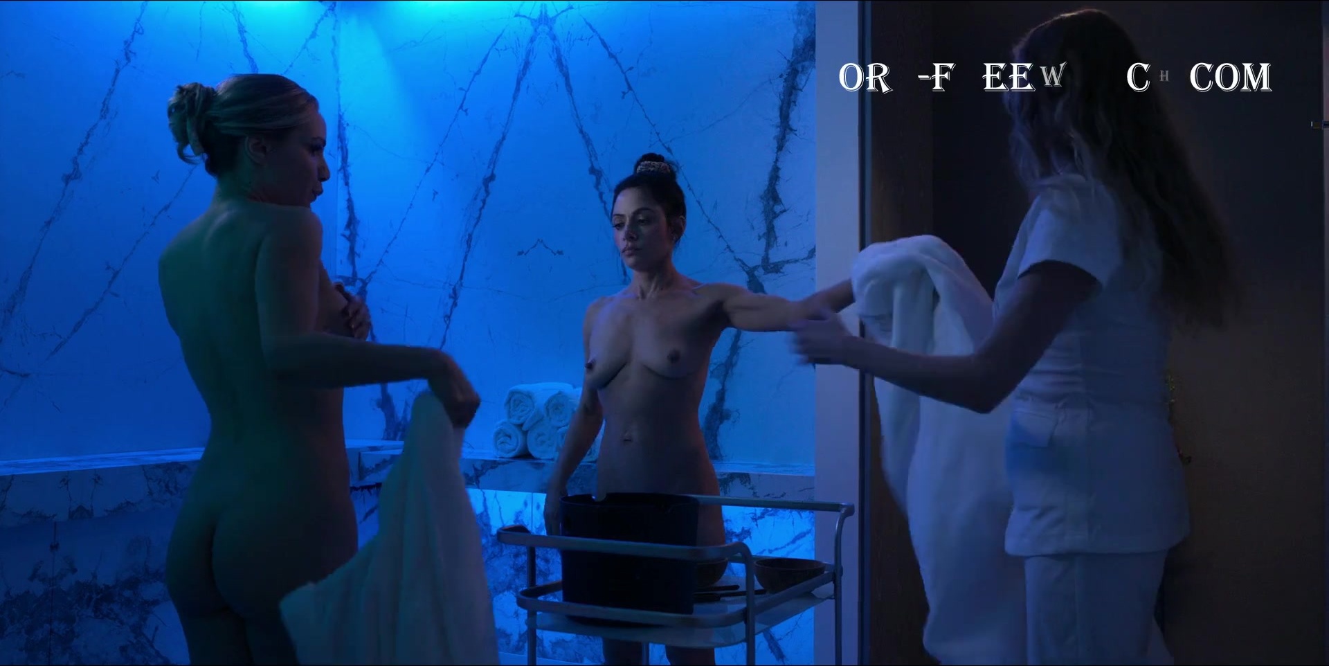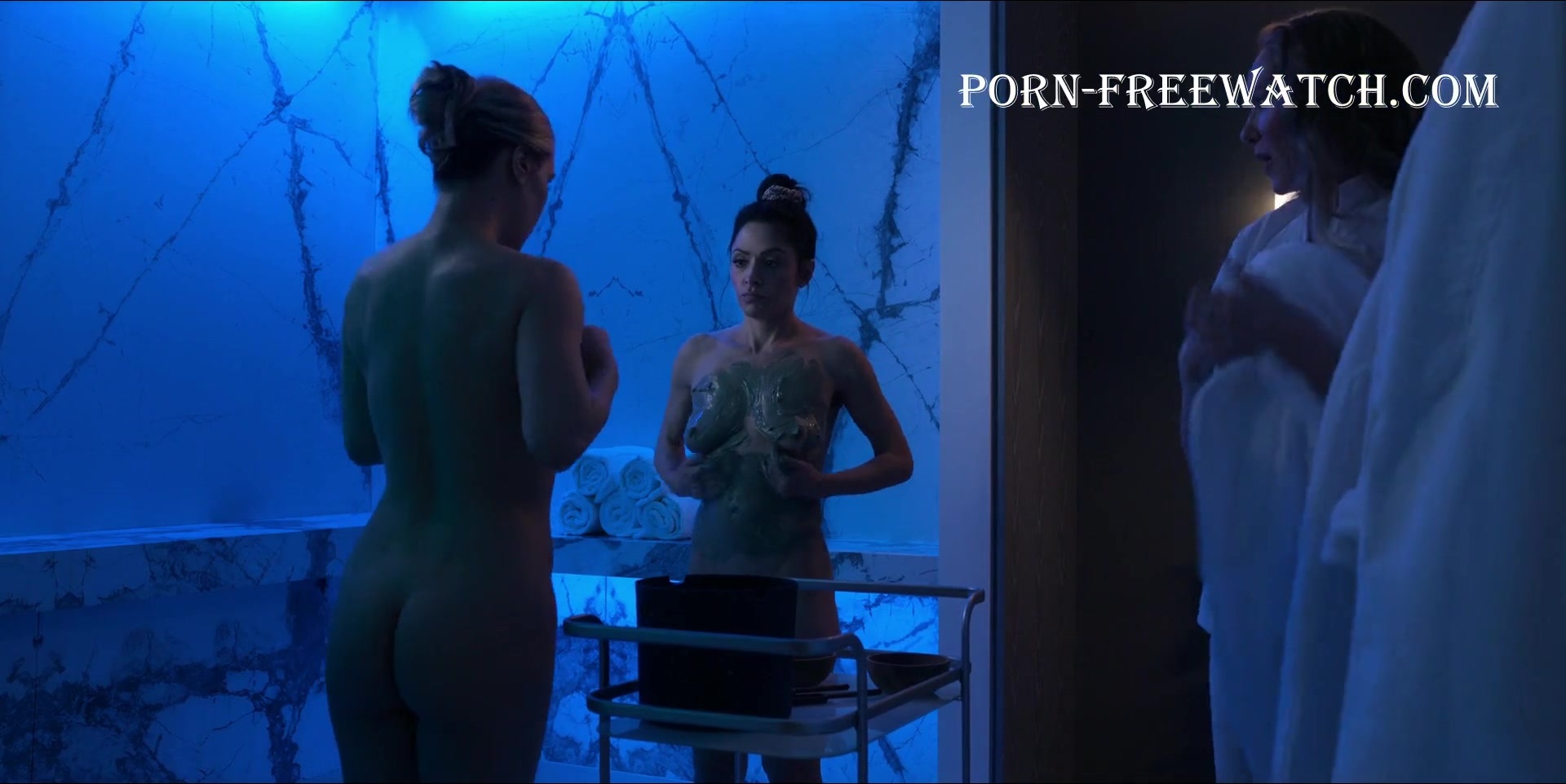 Amber Goldfarb (Canadian actress and host of various TV shows) as Trina and Sarah Shahi as Billie Connelly in the acclaimed series "Sex/Life" and their erotic scene in the fourth episode of the second season, which was released on the Netflix platform in March 2023 of the year. So, they take off their robes, showing off their nude tits (Amber Goldfarb's bare breasts are just gorgeous), smearing first themselves with healing mud, and then each other. Very erotic.
