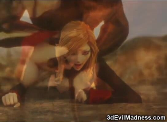 Red-haired elf fucked in two holes by dragons and ugly monsters