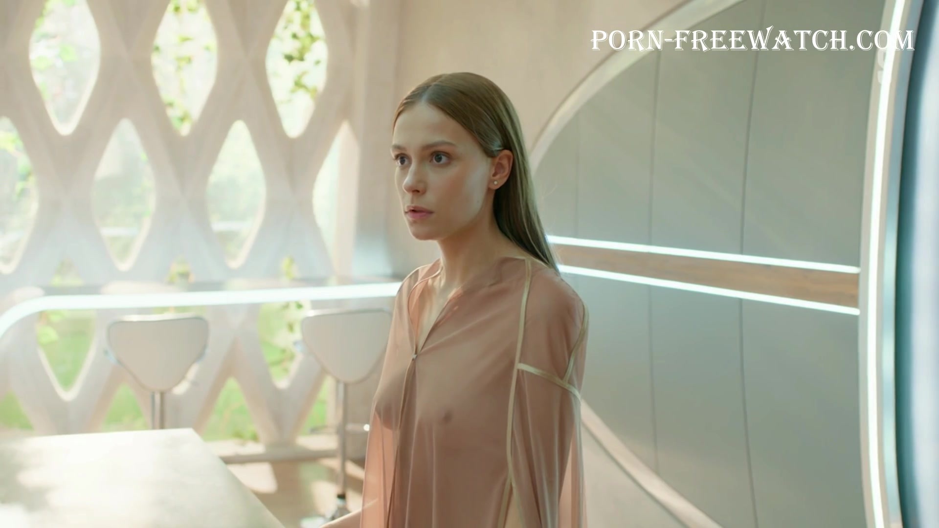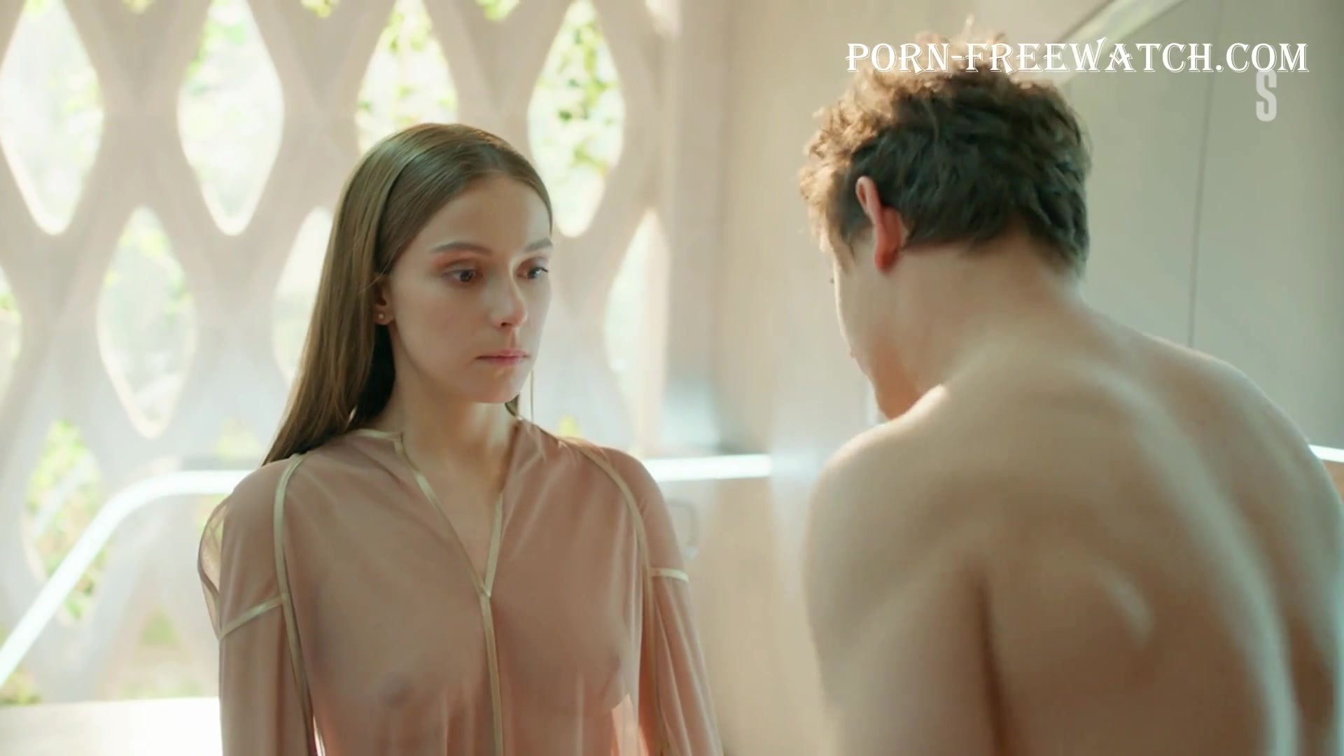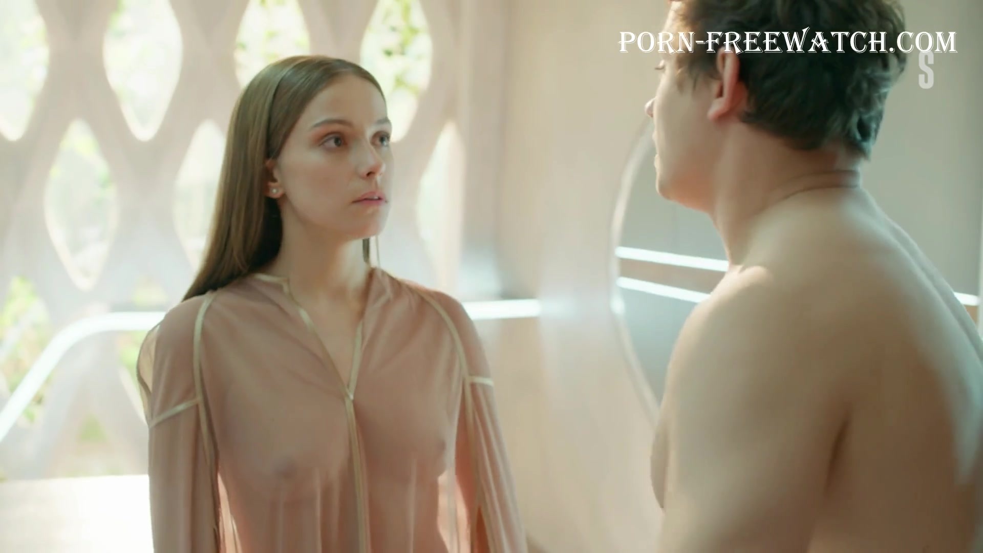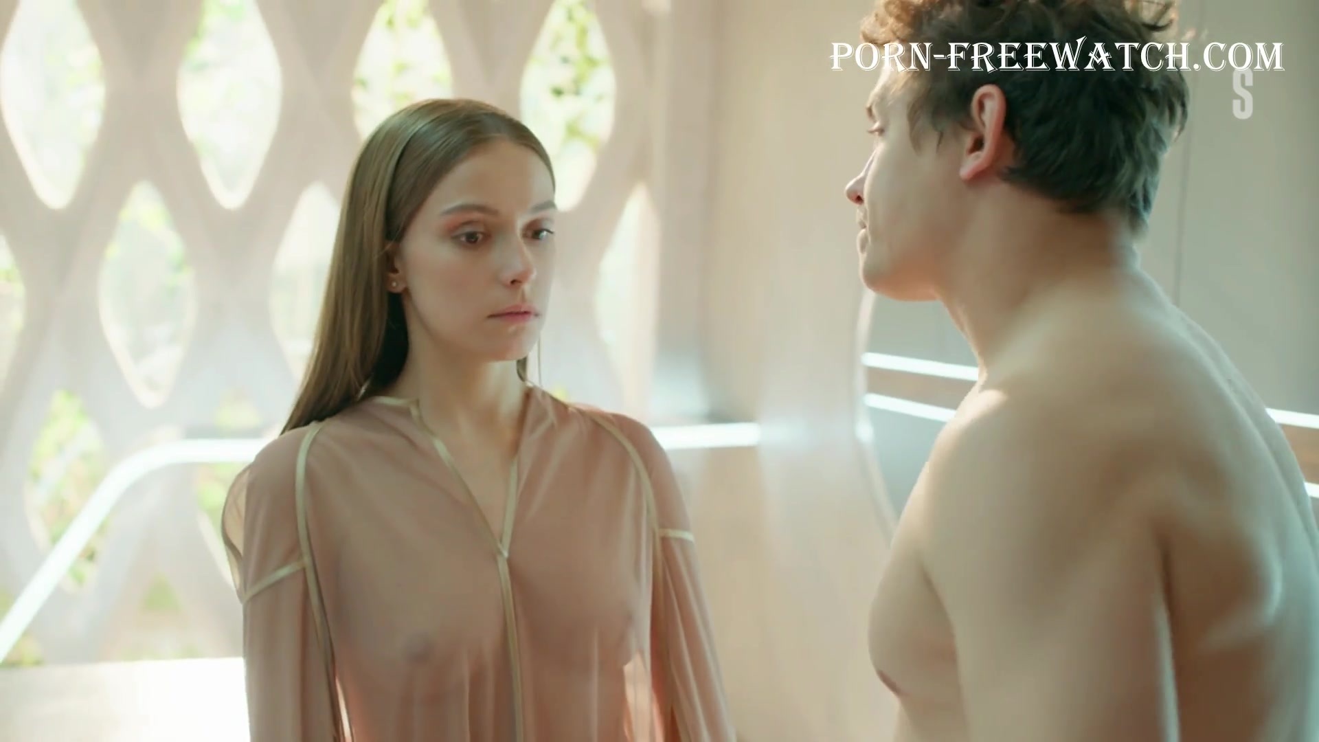 Continuation of the erotic scene with the beautiful 27-year-old Pelageya Nevzorova, where she will demonstrate her magnificent bare breasts and sexy ass in mini panties, and then we can fully enjoy the actress's tits in a transparent dressing gown ...