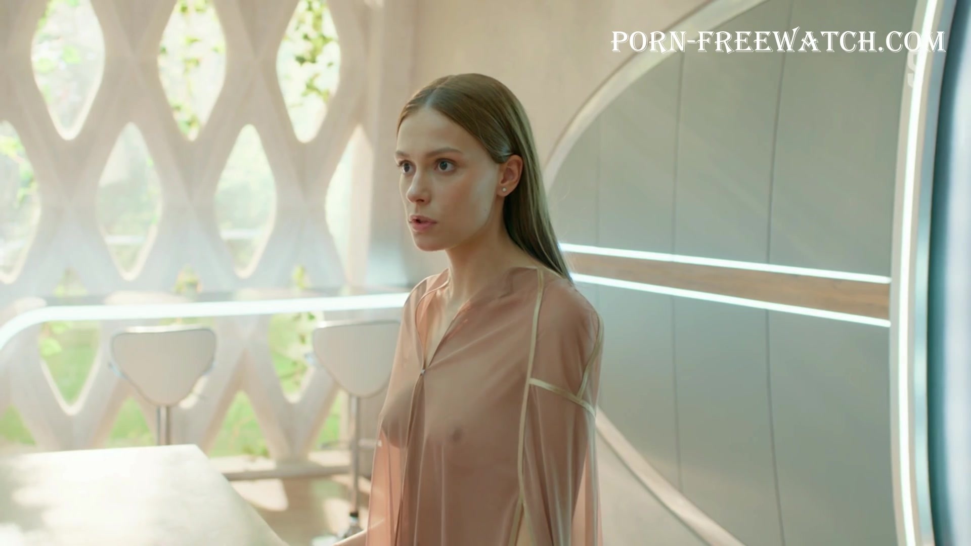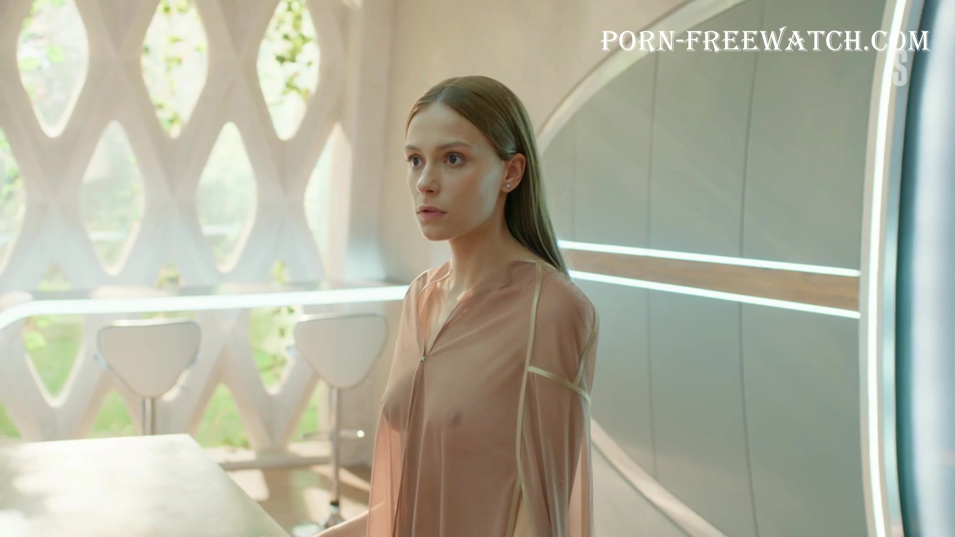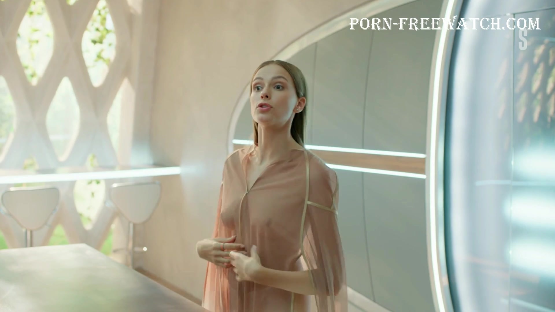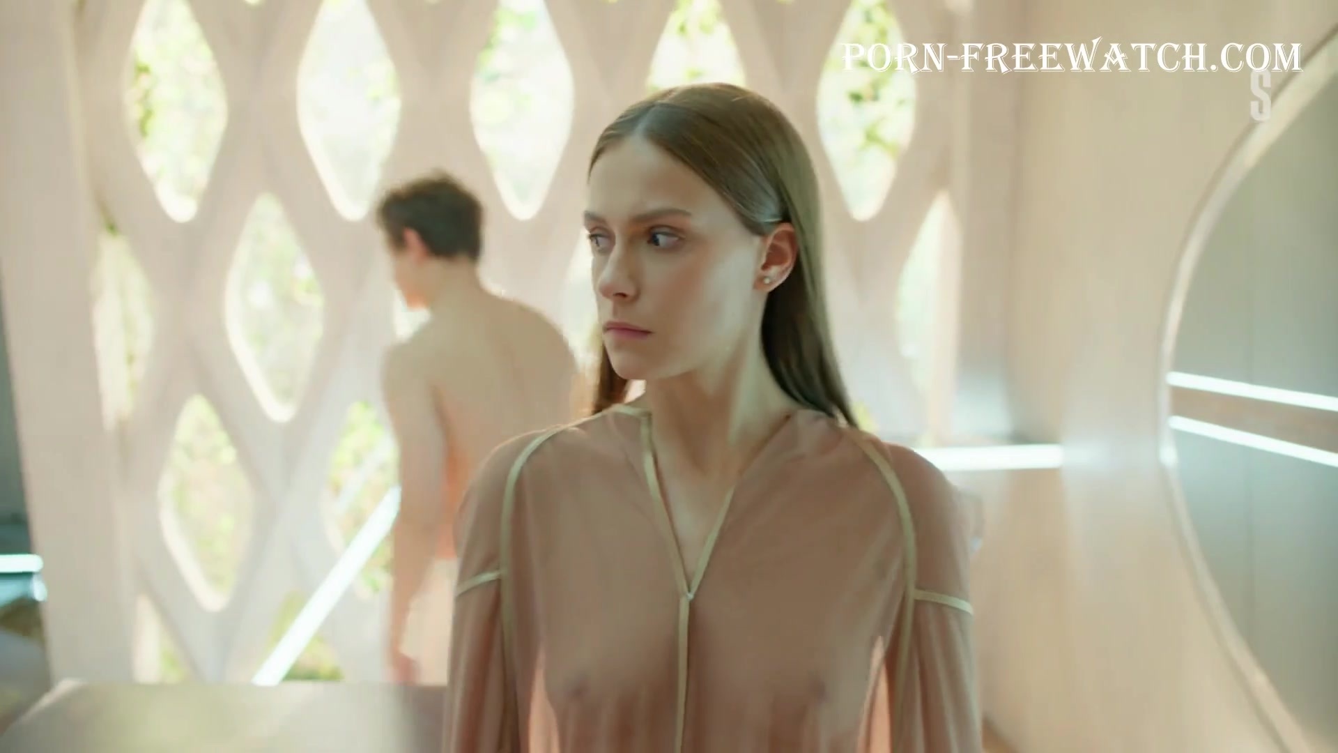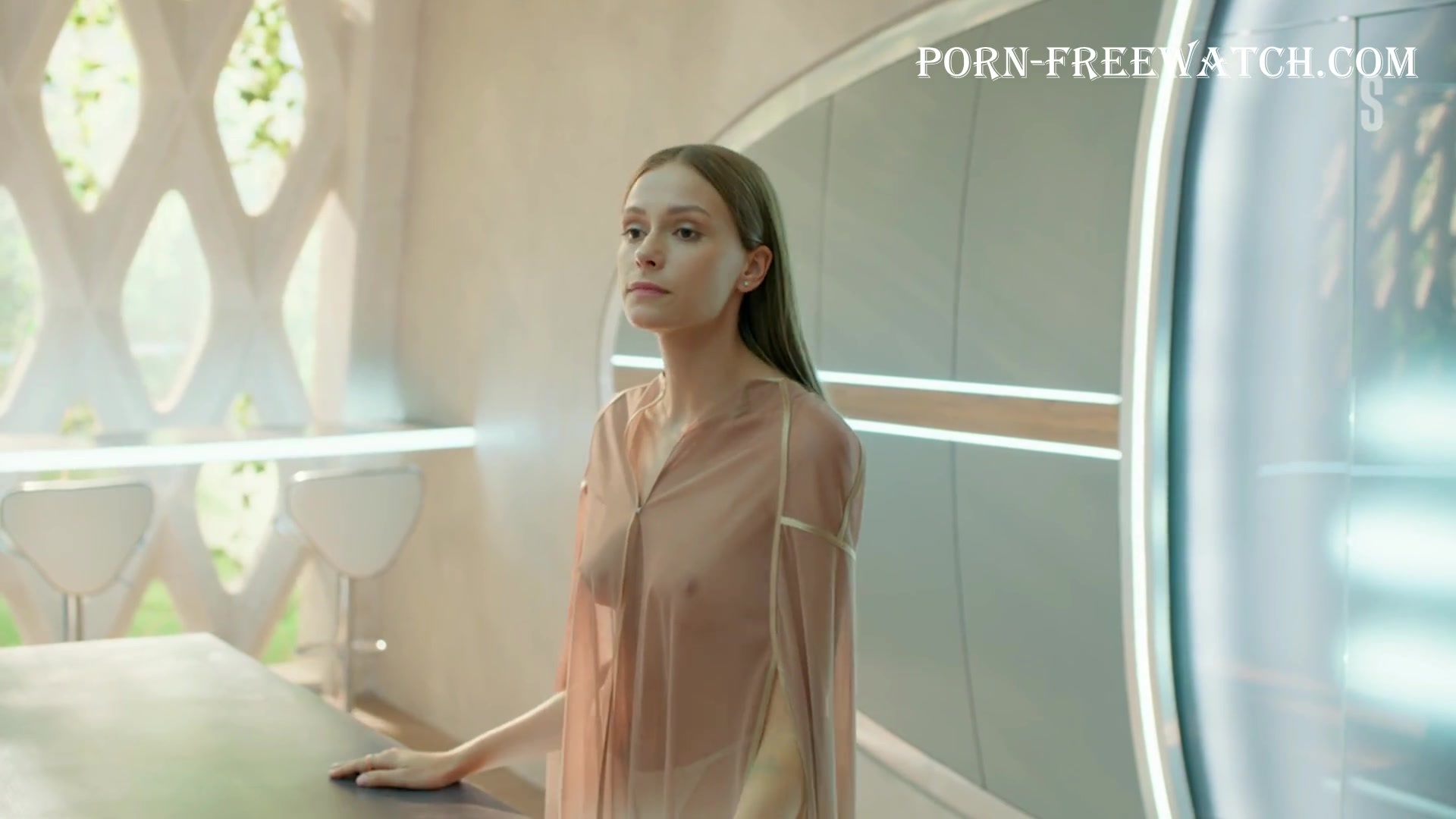 Continuation of the erotic scene with the beautiful 27-year-old Pelageya Nevzorova, where she will demonstrate her magnificent bare breasts and sexy ass in mini panties, and then we can fully enjoy the actress's tits in a transparent dressing gown ...
