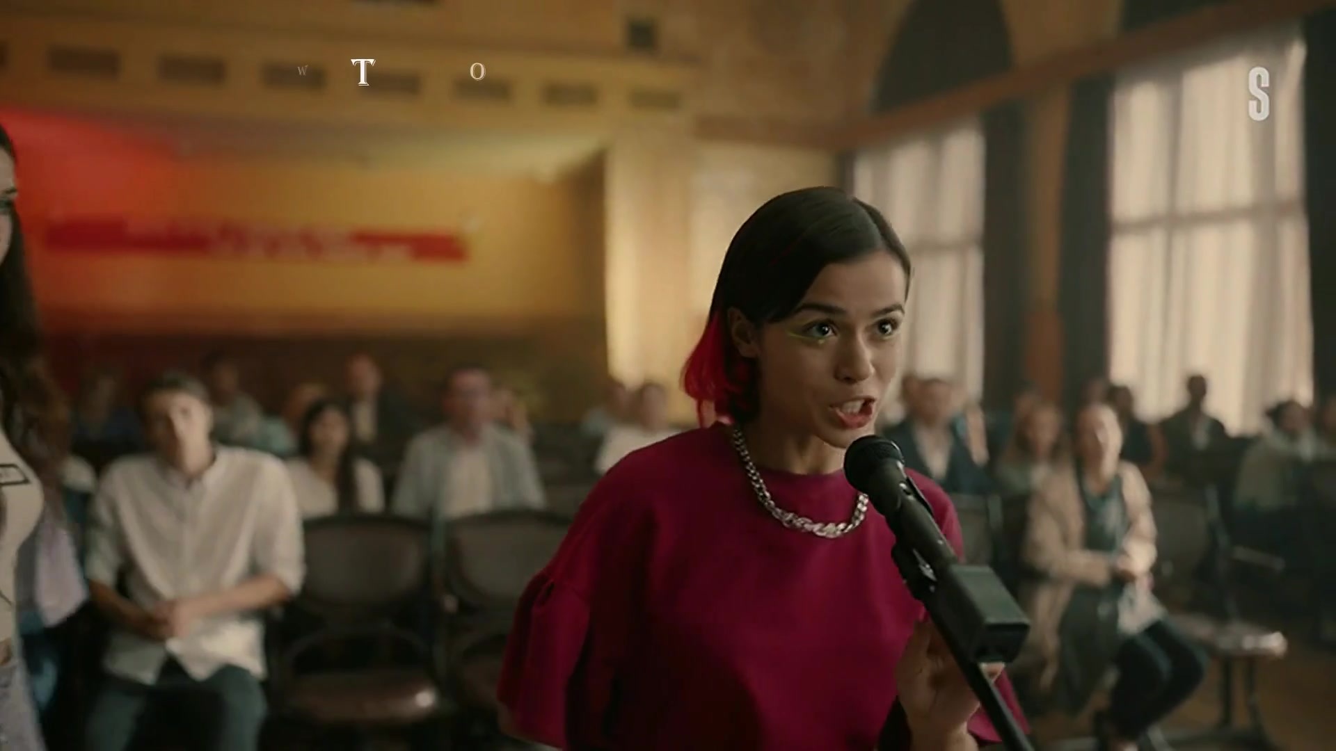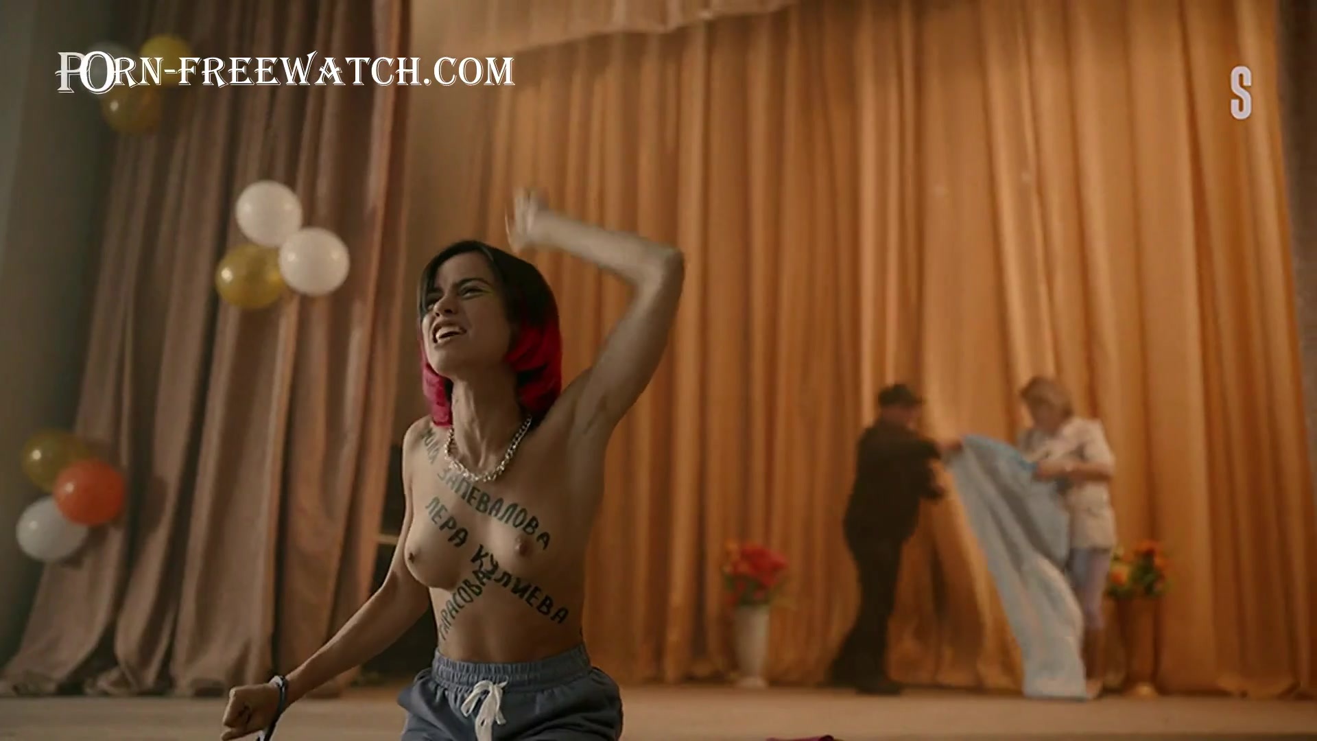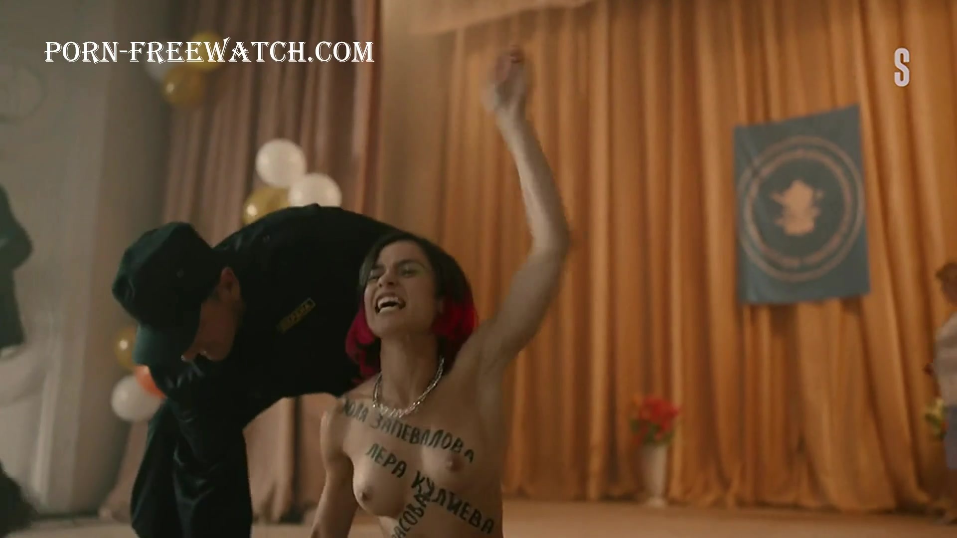 Для русскоязычных: Уже хорошо известная нам красавица Кристина Кучеренко снова обнажает грудь, теперь это будет демонстративная нота протеста во время концерта в сериале "Альфа Ромео" 1 серия 1 сезон 2023 года. Хотя это не так важно.