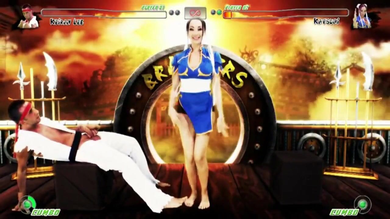 It was a great honor for this Asian woman with big buffers to star in a parody of the famous and even cult computer game Mortal Kombat. The narrow-eyed girl was to play the role of a warrior who fights on the field with a karate fighter, using not only fists, but also her strong dick. You can see what came of this in this video. Several rounds of battle mixed with fucking end in a crushing victory for the guy - a fucked and drenched in sperm Asian woman cannot continue to fight.