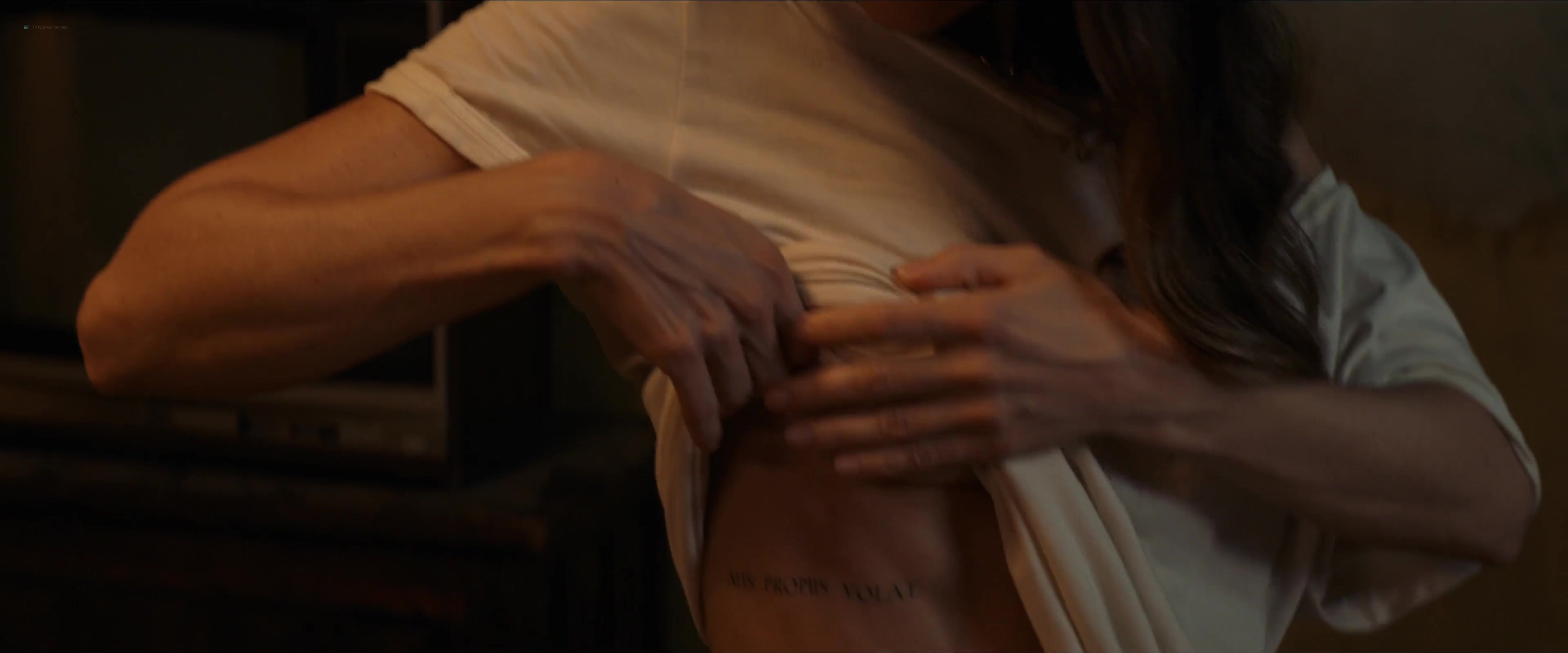 Alison Brie in the movie "Freelance" 2023, now in good quality. We will see how the mega sexy actress covers her naked breasts after the shower scene, as well as in a white translucent T-shirt. In general, as usual - very sexy!