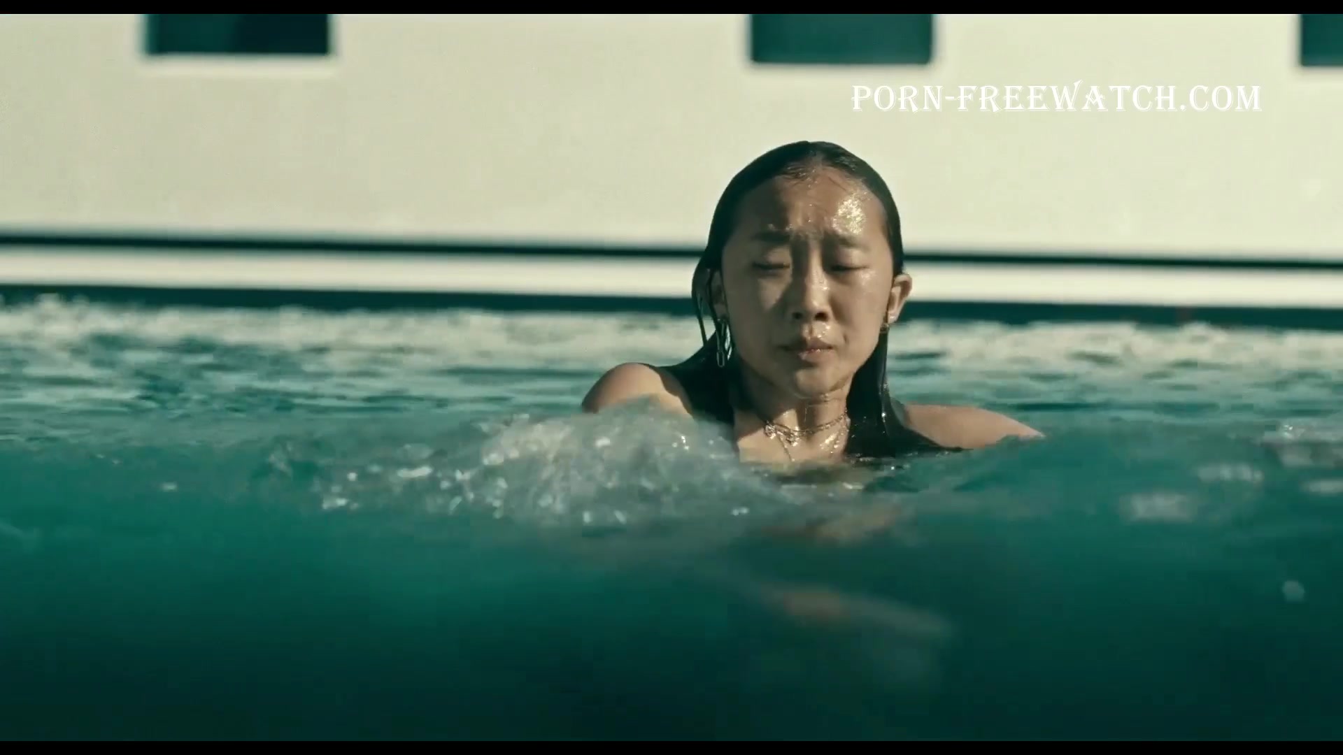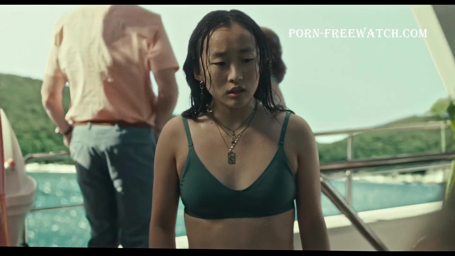 Ji-young Yoo 22 years old American actress, with Korean roots. In the series "Expats" she plays the role of Mercy. In the first episode, we will see her small naked tits in a rider pose, and then we will see how she swims in a swimsuit.