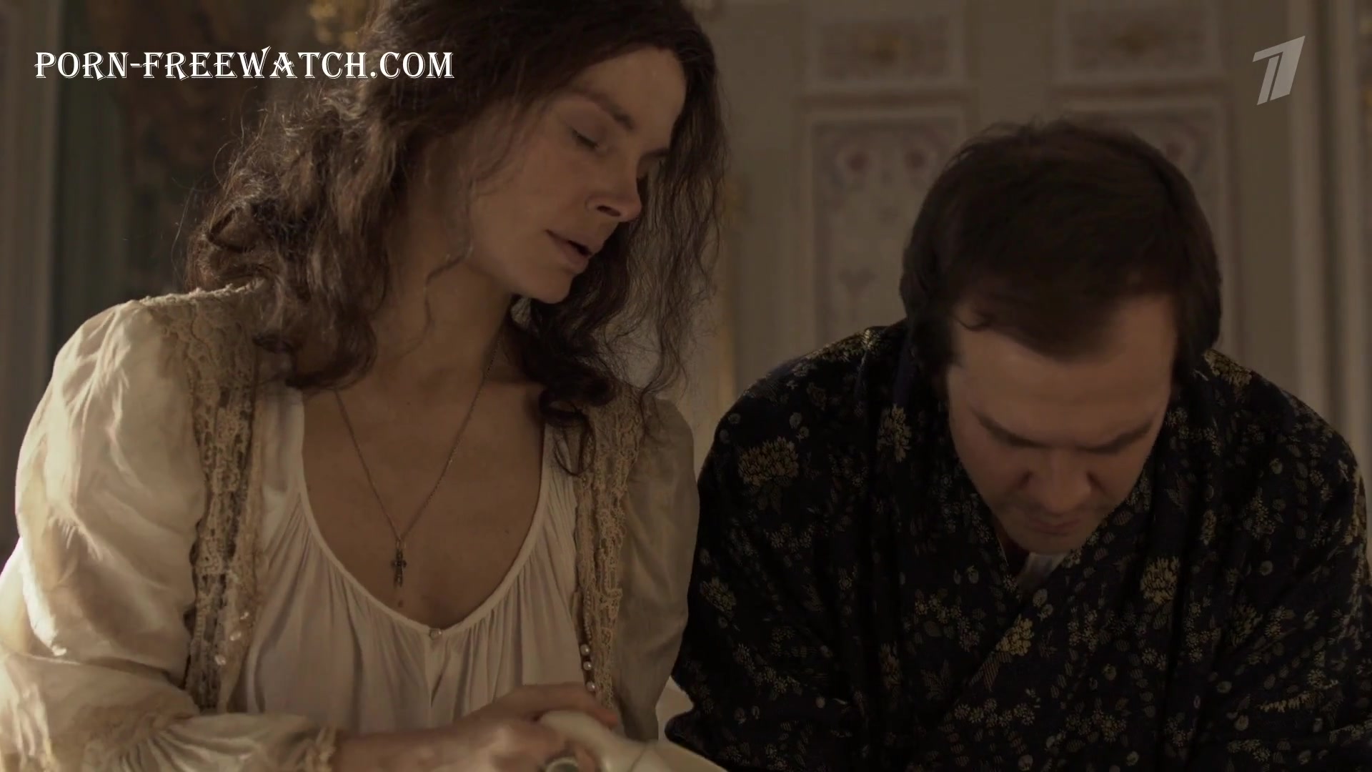 Для русскоязычных: Елизавета Боярская - сериал "Великая", 11 серия 2 сезона. Снова Лиза в полупразпрачном платье, в котором отчтливо видно голая грудь актрисы. Однако полностью обнаженной мы её так и не увидим.