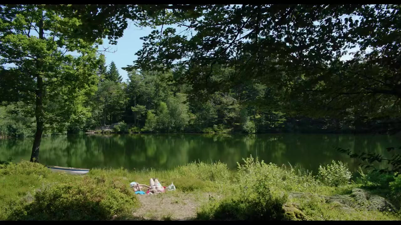Liv Henneguier and Clara Bretheau are two French actresses whose naked breasts we see in a small scene from the 2025 short film "Dammen", in a scene where they sunbathe topless on the river bank.