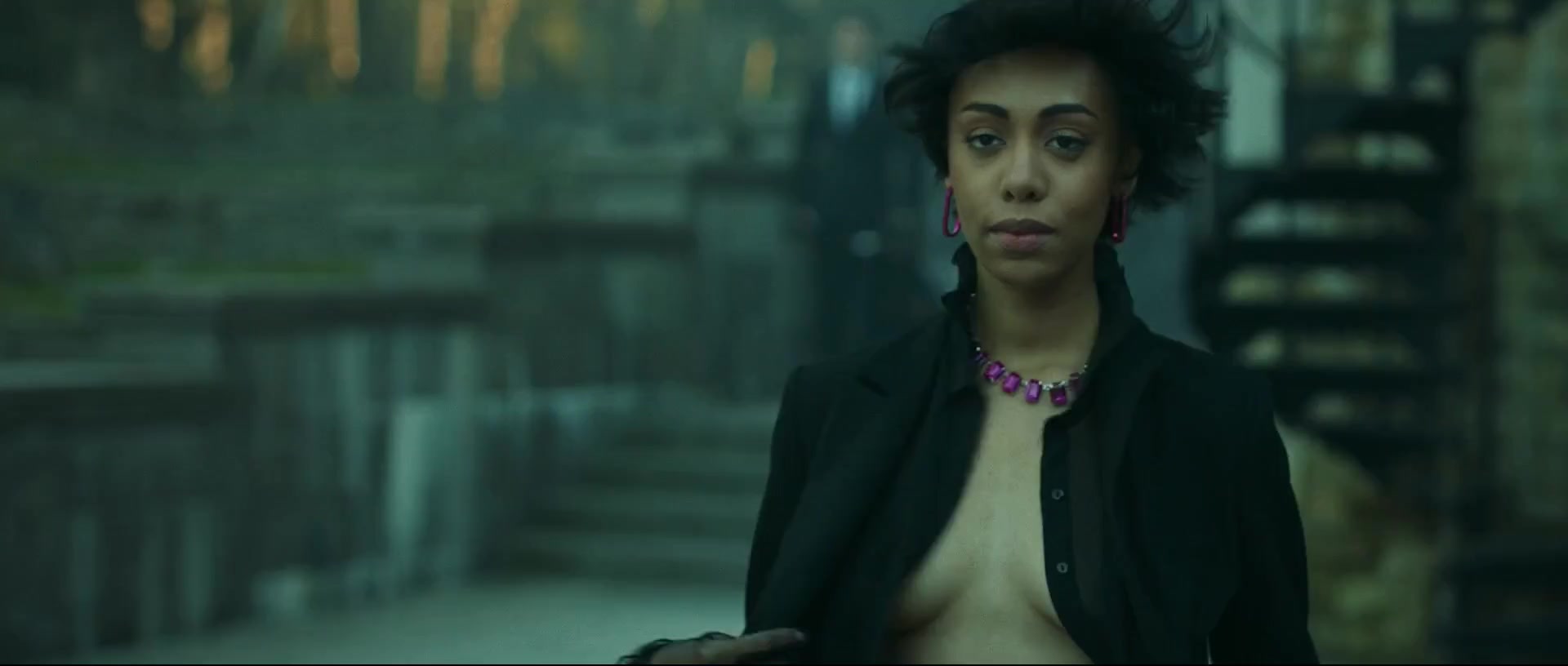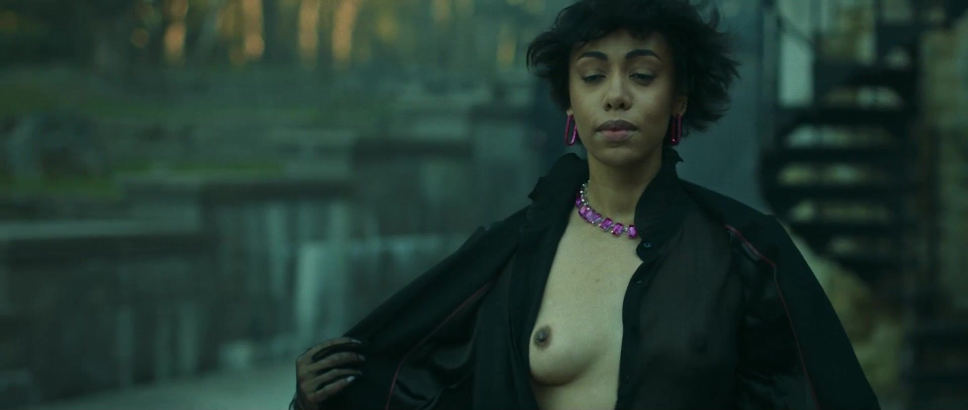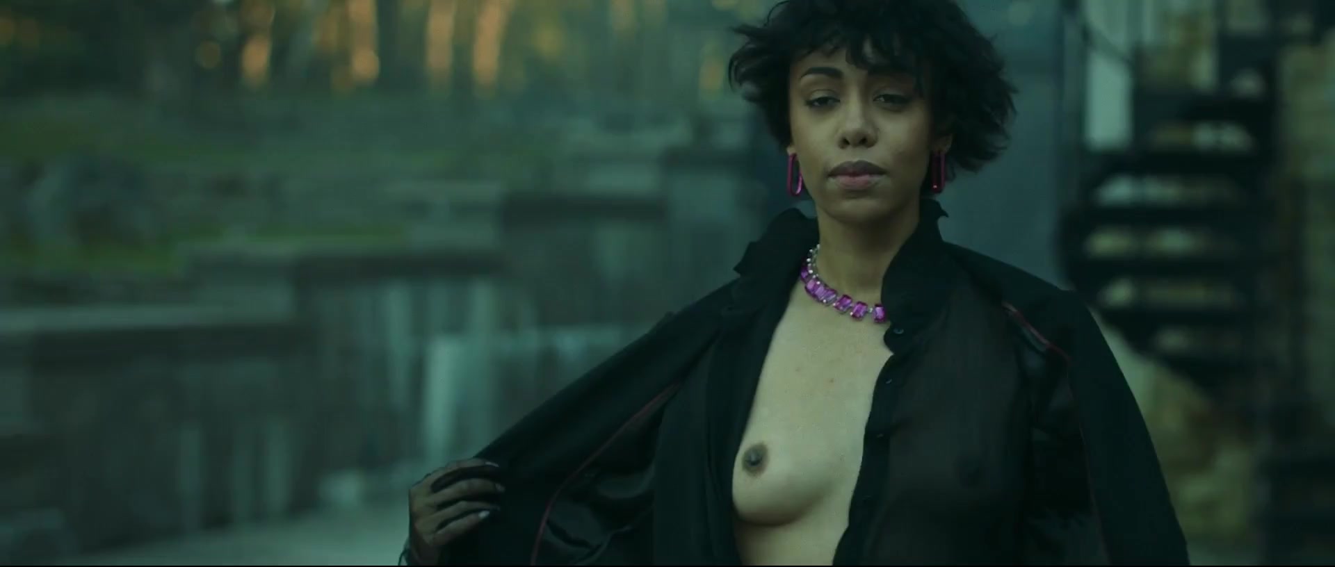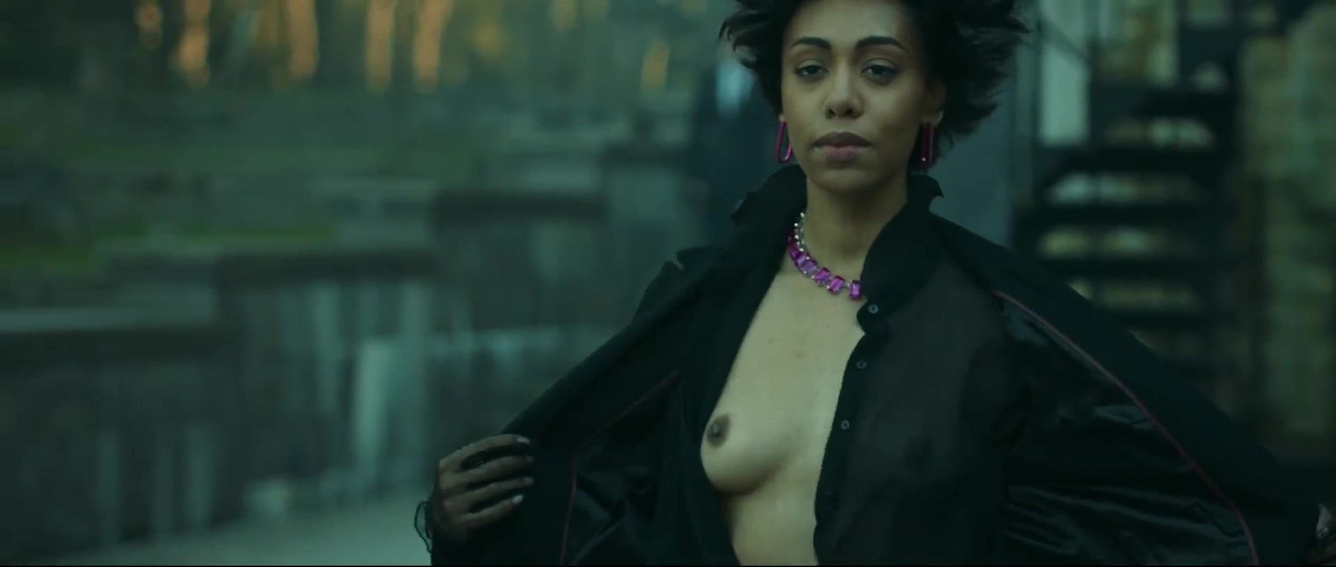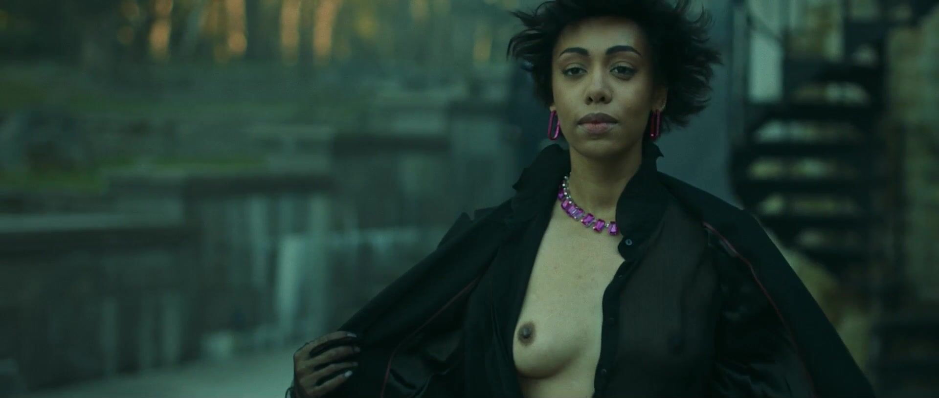 Teresa Diuro is a 33-year-old Russian actress with a blend of African and Slavic heritage. We see her natural breasts exposed in a short scene from the third episode of the series "Zhar."