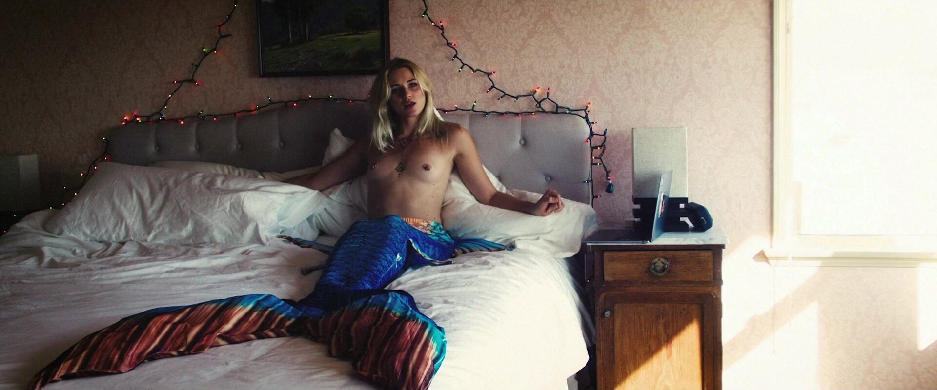 Mia Moore is a beautiful blonde actress with a tattooed body and pierced nipples, who will show us her small, neat naked breasts in several erotic scenes from the 2025 film "Pretty Miss Lolly".