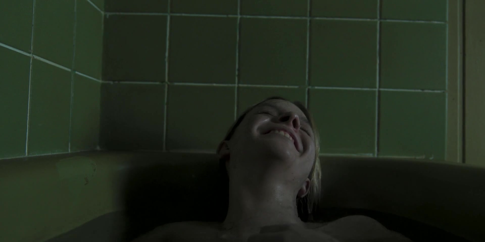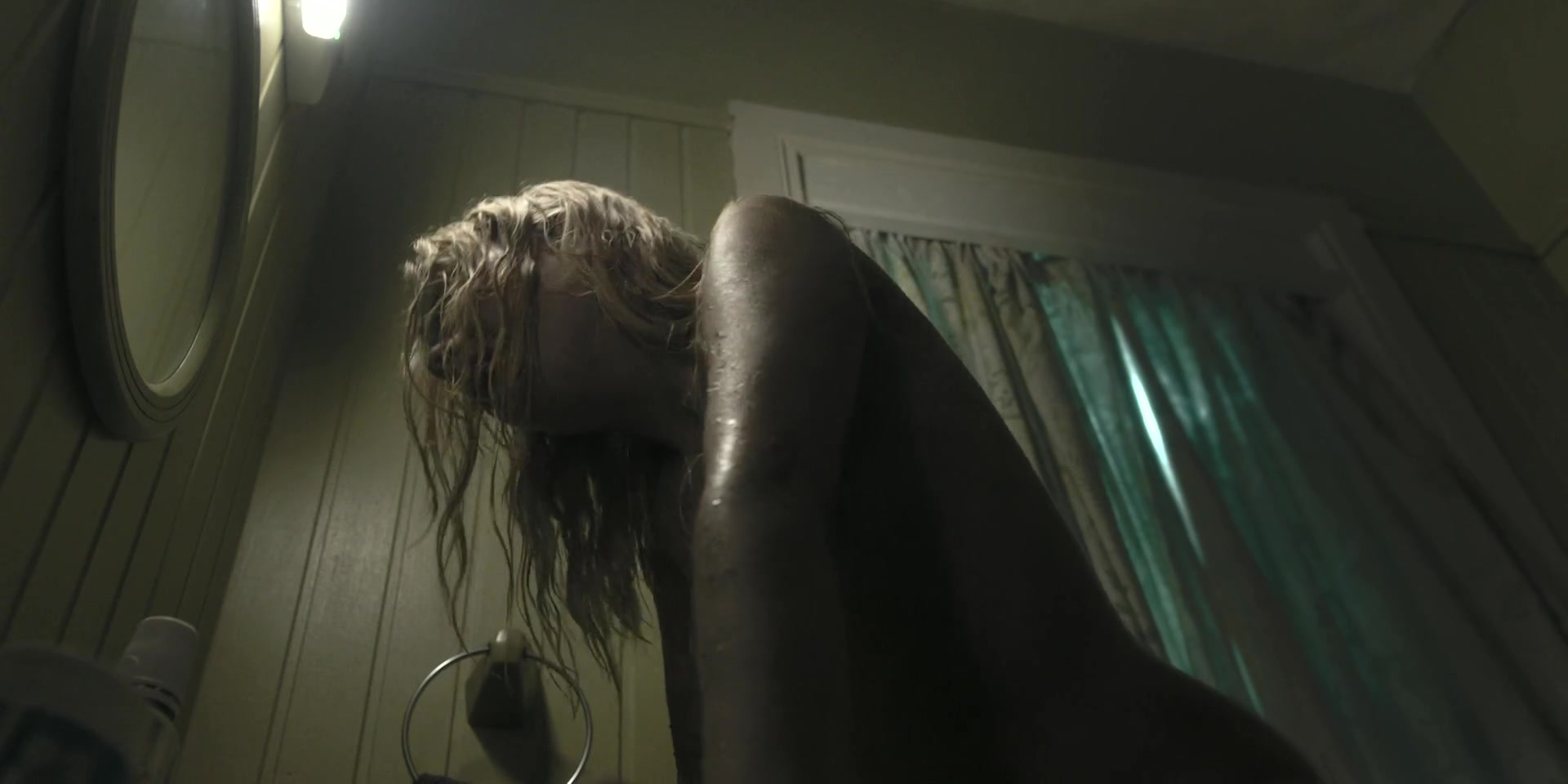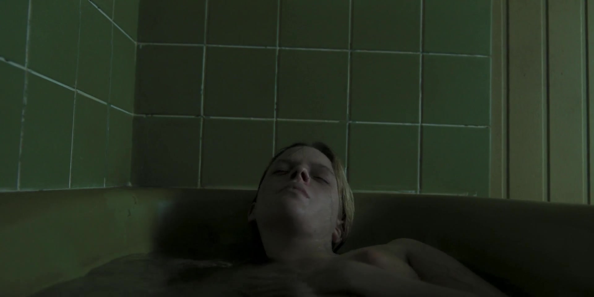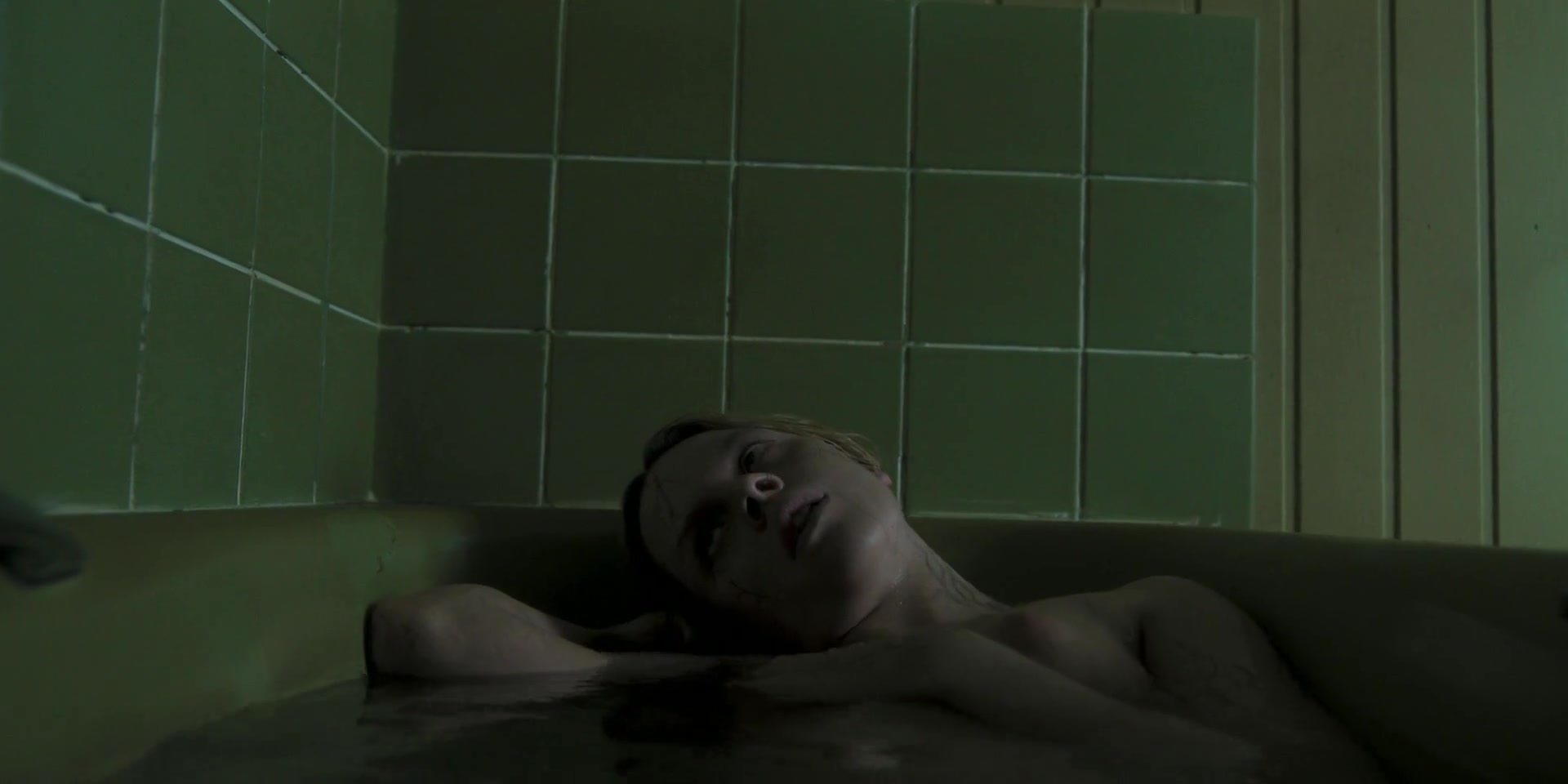 Emily Flain and her natural middle size naked tits from a short scene from the 2025 film - "The Morrigan".