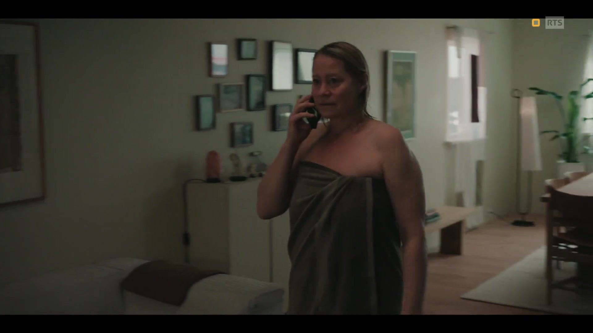 We will see a nude scene featuring Trine Dyrholm, in which she is completely naked, she has a curvy body and large natural breasts.