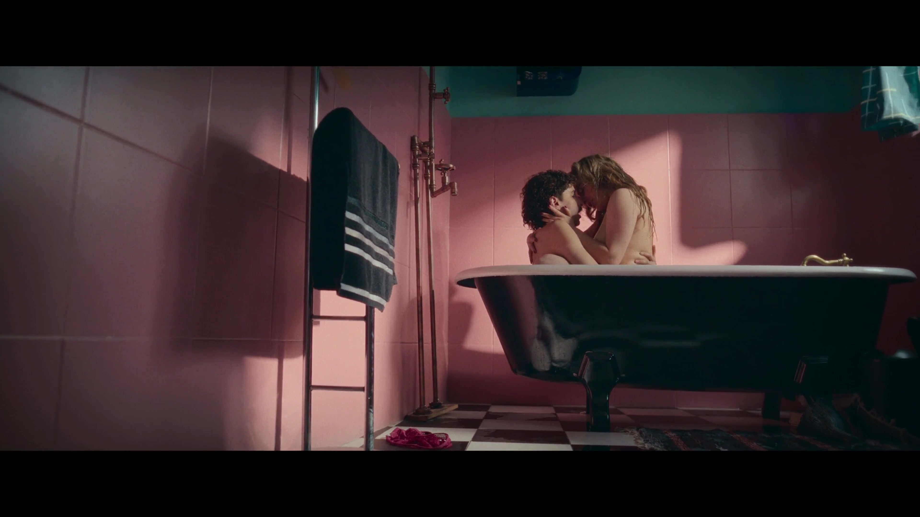 First we see the actress's perfect naked butt, and then her big, gorgeous nude tits (although not very clearly) in a passionate sex scene in the bathroom.