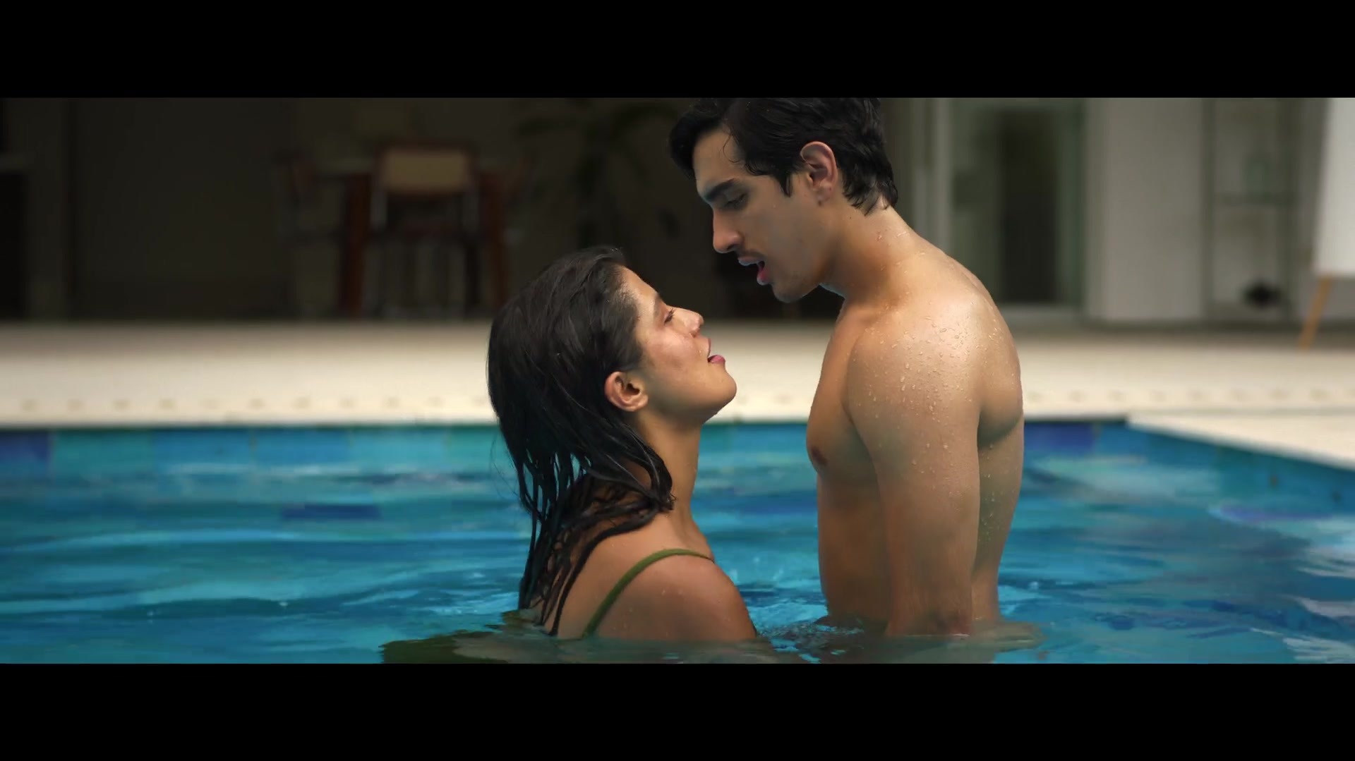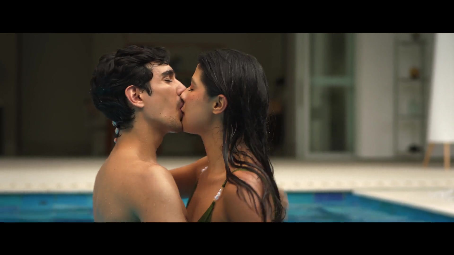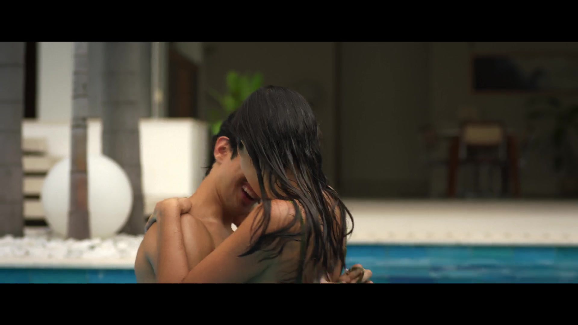 I've already described the events of Season 3 of Fake Profile, set in 2026. So, from now on, I'll only describe the erotic and sex scenes from that episode. Now we'll see the beautiful Colombian actress Laura Osma topless in a pool, kissing a guy, and then we'll see her luscious Latina butt in a swimsuit.