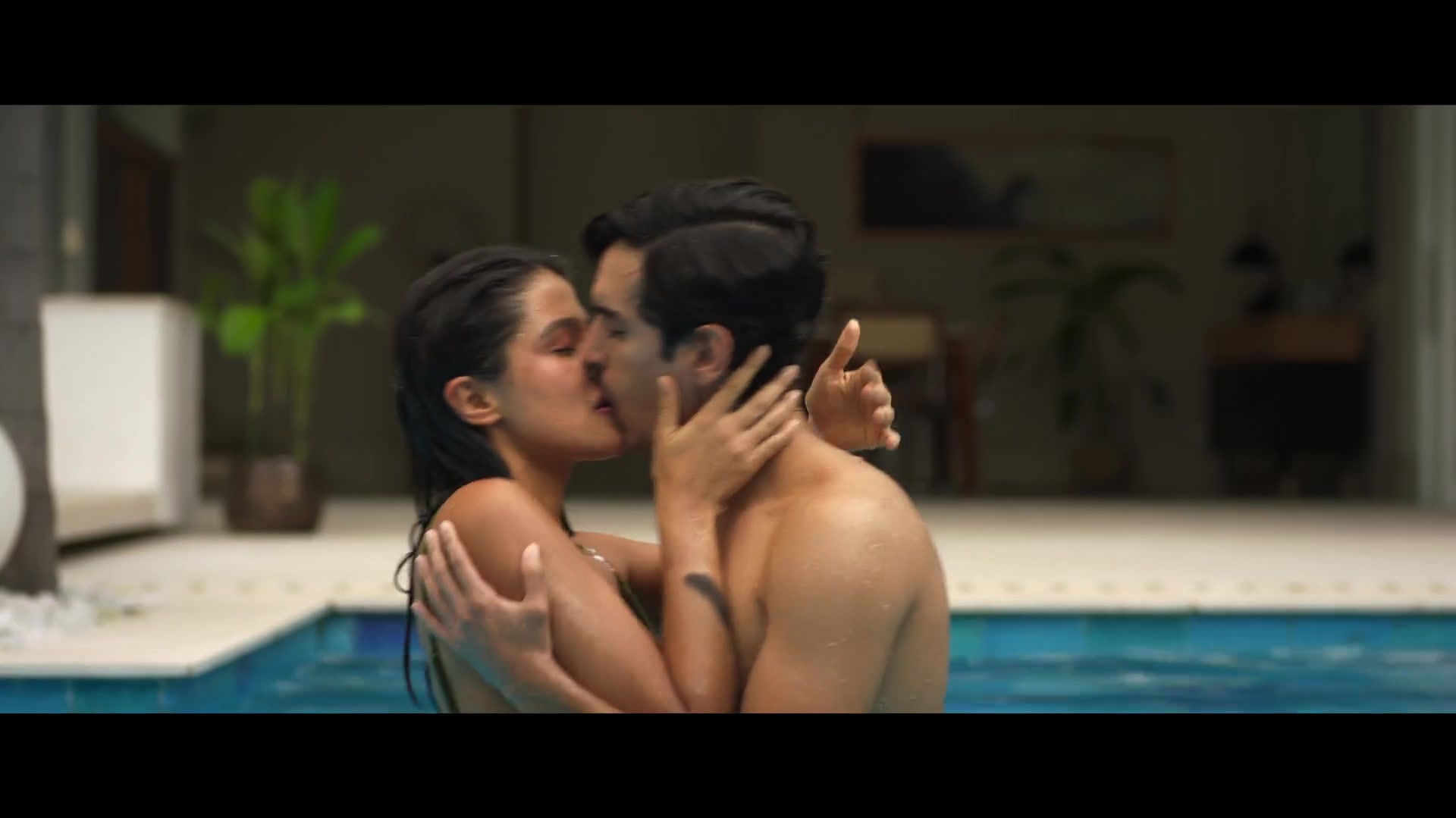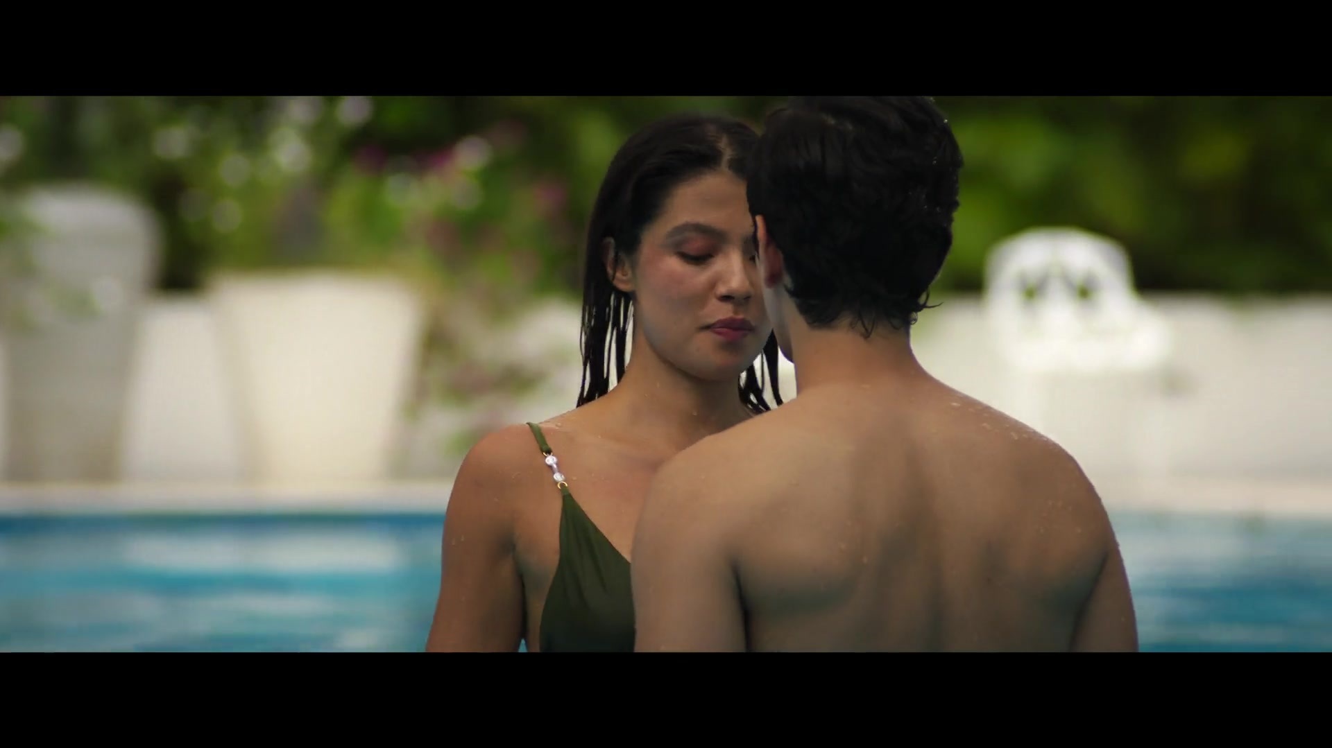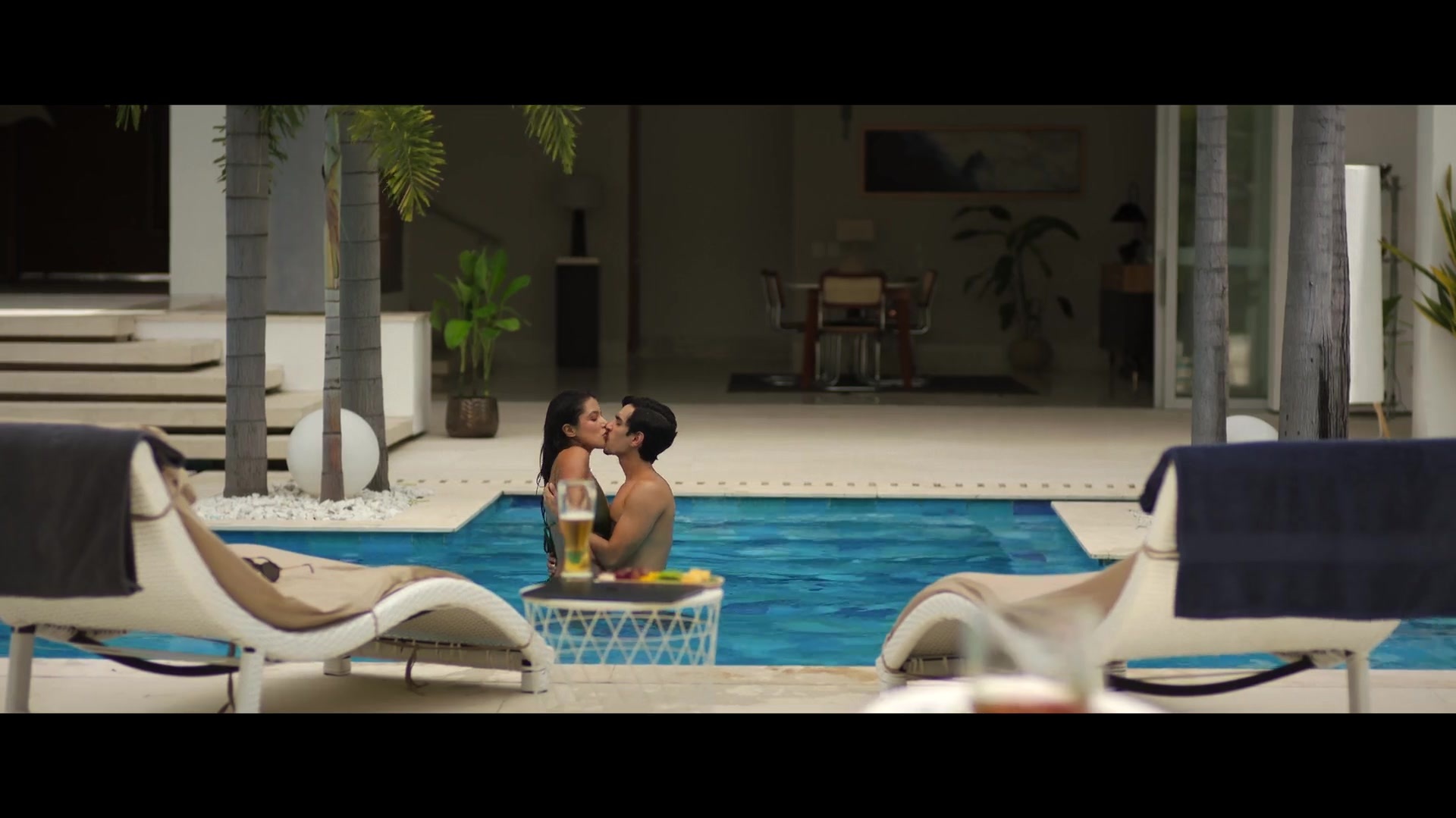 I've already described the events of Season 3 of Fake Profile, set in 2026. So, from now on, I'll only describe the erotic and sex scenes from that episode. Now we'll see the beautiful Colombian actress Laura Osma topless in a pool, kissing a guy, and then we'll see her luscious Latina butt in a swimsuit.
